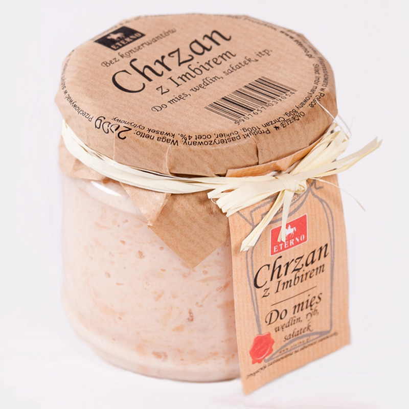 200g Wspaniałe połączenie dwóch ostrych smaków. Doskonały dodatek do mięs, wędlin, pieczeni, ryb, serów, sałatek, jajek, białej kiełbasy i wędzonych ryb, można również stosować jako dodatek do sushi.
